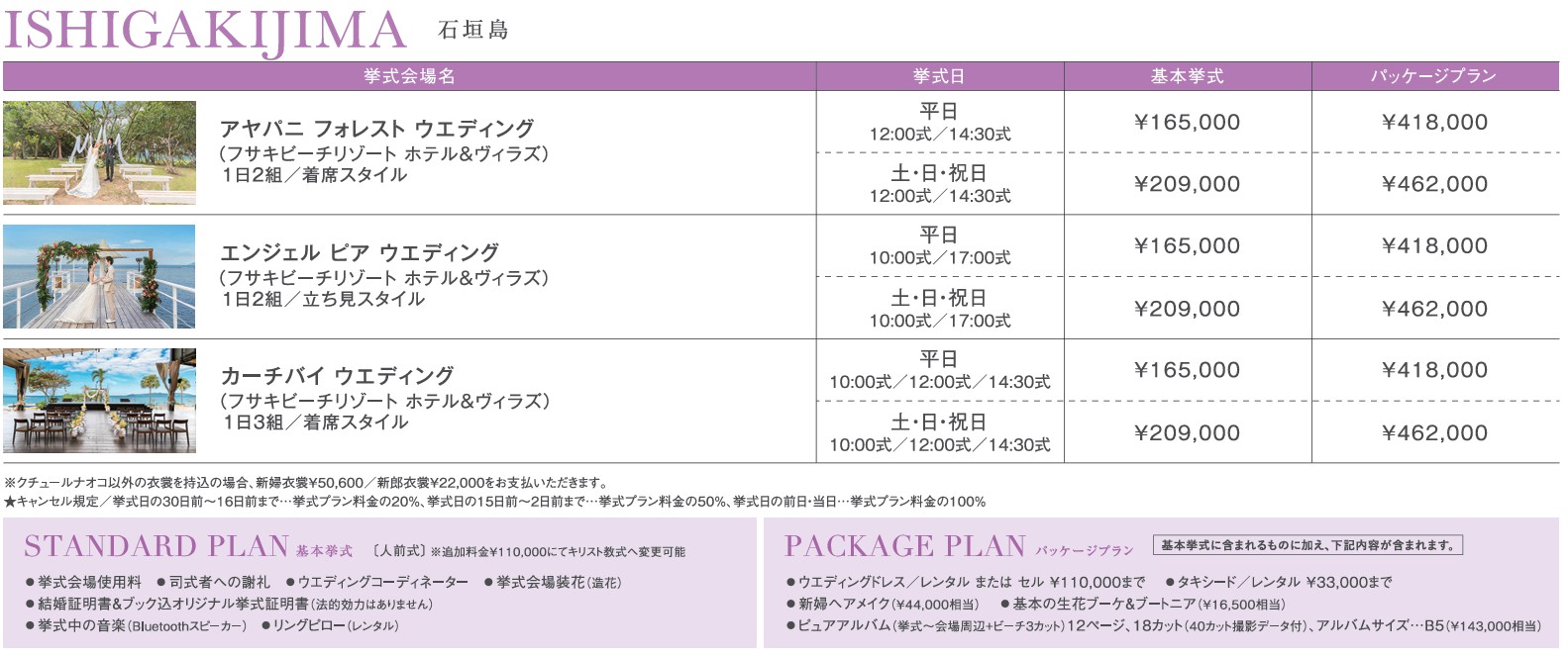 | 挙式可能組数 | 1日2組限定9:30・17:00/12:00・14:30 |